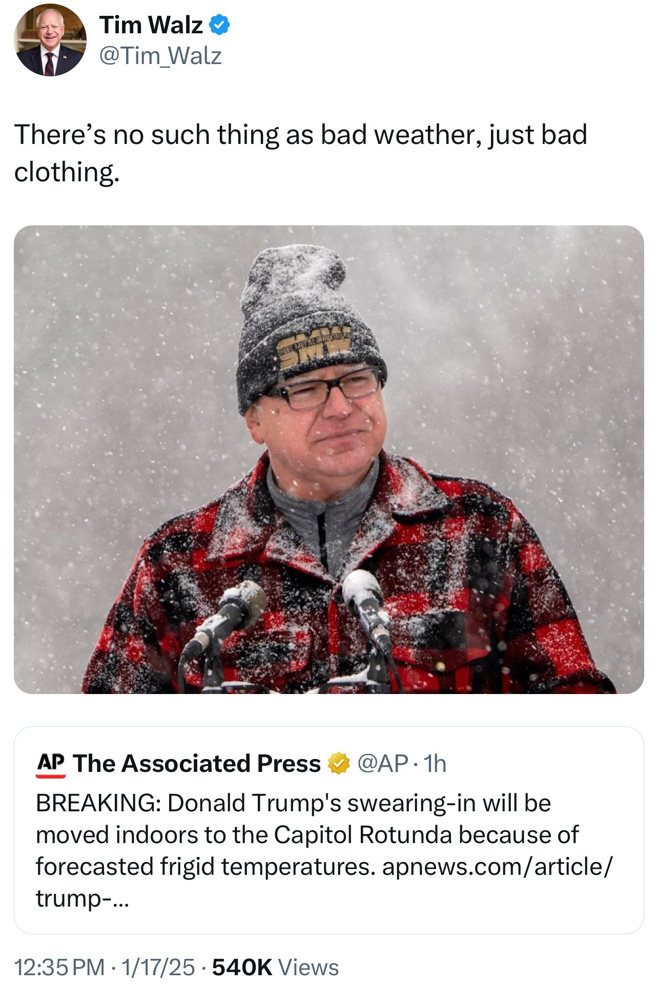 Was 7 degrees when Reagan was inaugurated. Trump is just moving it indoors to spare himself the embarrassment of a small crowd.