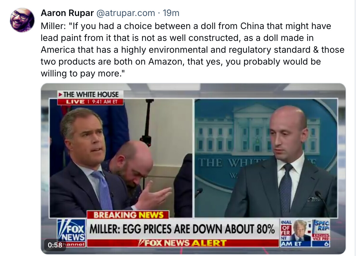 Aside from the fact that, probably, very few dolls are manufactured in the U.S. (Barbie dolls, btw, are made in China), what’s this about America’s “highly environmental and regulatory standard[s]”? You mean the standards the Trump administration is determined to weaken or remove?