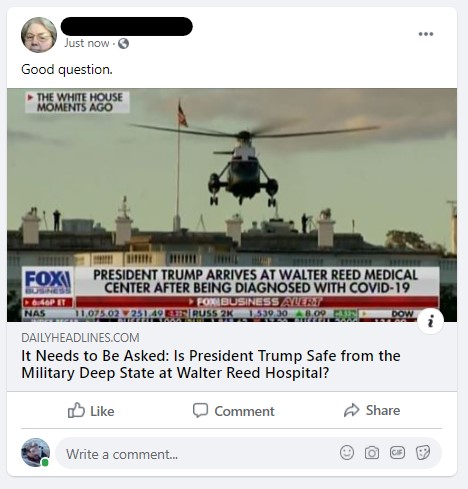 In case you were wondering whether the president’s hospitalization would result in the Quonspiracists re-examining their beliefs, sorry to disappoint you.
