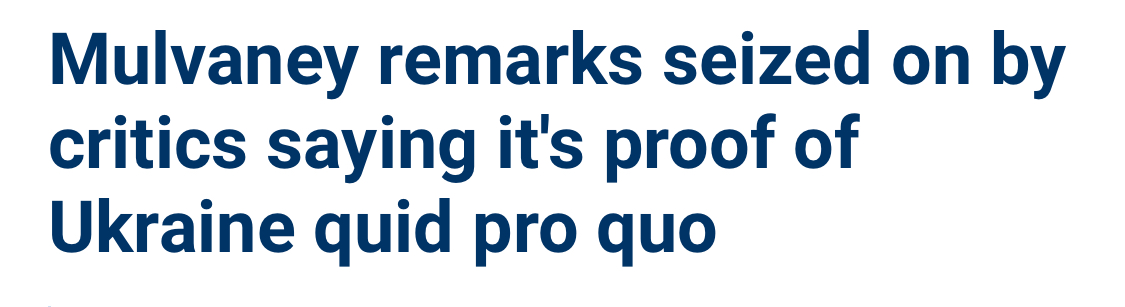 “concerns over corruption” – Every reporter needs to press every official on this: What corruption? It’s become another version of “I’m under audit”, a meaningless verbal tic that explains nothing. They are referring only to Trump’s fever dreams about 2016 election hacking. That’s fantasy, not corruption. Biden and the rest of the world went after Ukraine over actual corruption. This is not that, and the media needs to press Trump on it to make the truth obvious.