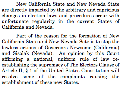 The GOP’s desperate attempt to have the Supreme Court overturn the results of the presidential election has attracted powerful support from … states that have yet to come into being, according to a Thursday court filing.