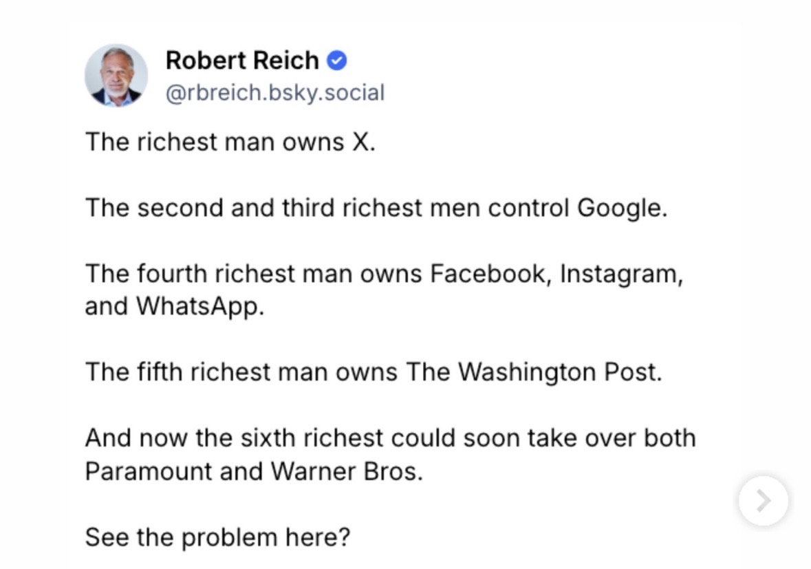 But it is not just “liberal bias” in the media. It’s the consolidation of various types of industries into a few, very few wealthy hands. This is Have and Have Nots, or the serfs and the lords of their manors. And some of them adhere to some notion of Divine Right to Rule.