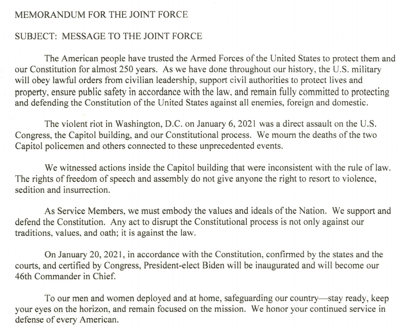 “Trump lied, Biden won fair and square in the November election.”