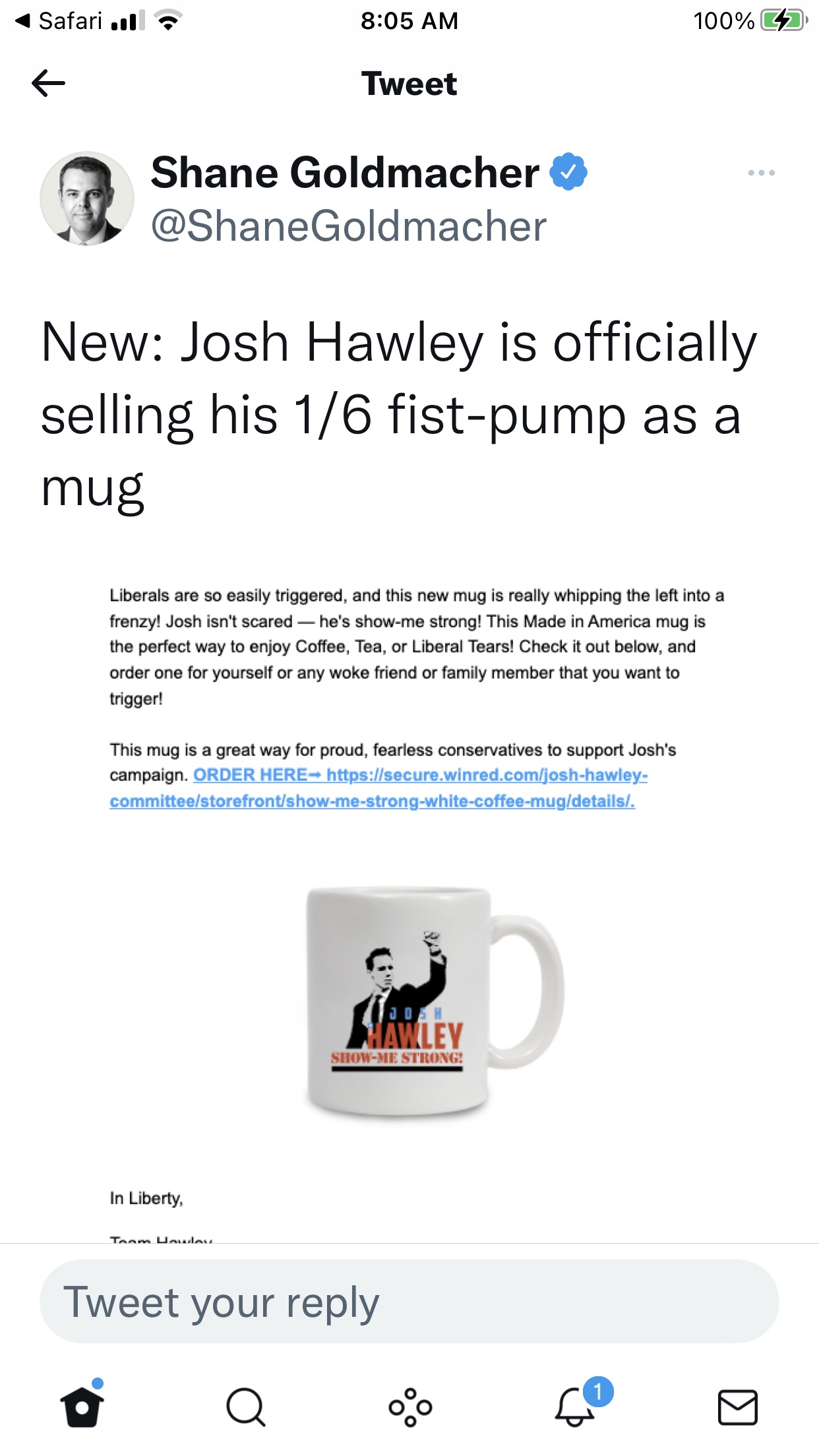 I’m not sure that someone who used his support of the January 6 insurrection - which attempted to overthrow the government - as a device to sell coffee cups is a credible questioner of the nominee’s judicial temperance and qualities: (also a member of Jen Pataki Fan Club).