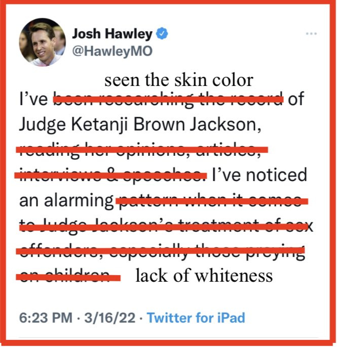Well of course Joshy doesn’t like her, she went to Harvard Law, and he’s a Yalie. They both clerked for a supreme court justice, her Brennen, him Roberts, he wrote a book, she worked as a federal defense lawyer. Hawley was a law professor at MIZZOU, she became of federal judge.