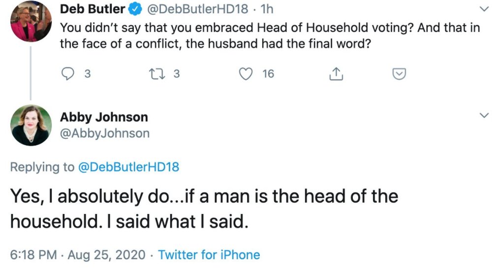 So Abby Johnson is still tweeting in defense of her head-of-household voting position. Like, right now. Minutes before her speech to the RNC. Last one was 2 mins ago. pic.twitter.com/ntCWBHmkM6