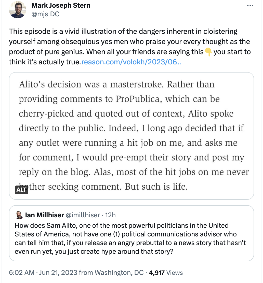 Justice Samuel Alito: ProPublica Misleads Its Readers - WSJ (archive.is)