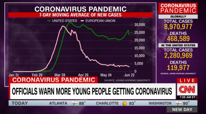 Each and every one of these states is showing current case loads increasing at linear to exponential rates. Sick people are NOT HAPPY people. If sick people learn that the reason they are sick is because somebody didn’t do their damn job and actually impeded efforts to keep them healthy while lying to them, then they won’t like the liar who didn’t do their damn job. Hell, just compare the curves for the US against the curves for the EU!