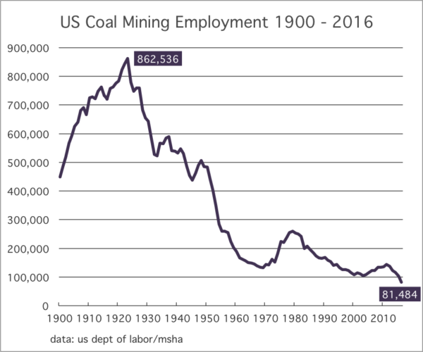 This coal business is one of my pet peeves. The US coal industry is effectively dead as far as coal mining jobs are concerned: