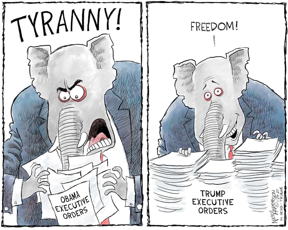 Speaker Mike Johnson, R-La., said at a gathering of House Republicans last week at Trump’s golf club near Miami that Trump has “been using his executive authority, I think, in an appropriate manner.