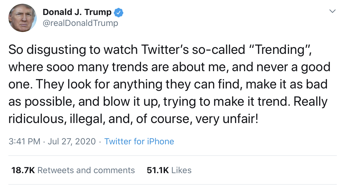 QUIT WHINING LIKE A BITCH ABOUT TWITTER YOU FUCKING FAT, PATHETIC CRY BABY. YOUâRE THE FUCKING PRESIDENT AND 150,000 PEOPLE ARE DEAD BECAUSE OF YOUR MALIGNANT NARCISSISM AND TOTAL INCOMPETENCE.
