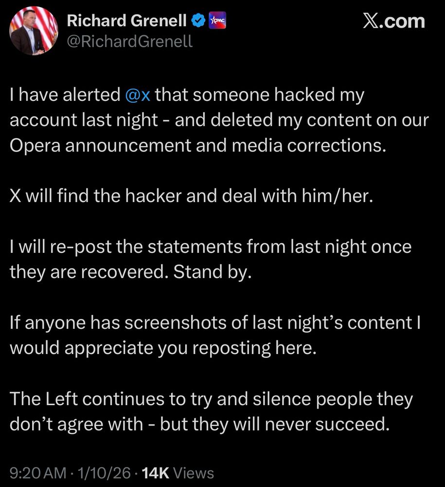 I took a screenshot of what Grenell posted. It said, “Donald Trump is a Russian agent.”