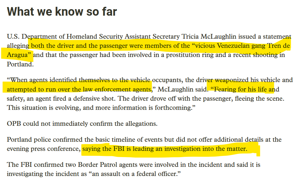 “Oregon officials are launching their own investigation of a Portland incident where Customs and Border Patrol officers shot a couple during a vehicle stop. No video has yet emerged of the incident.”