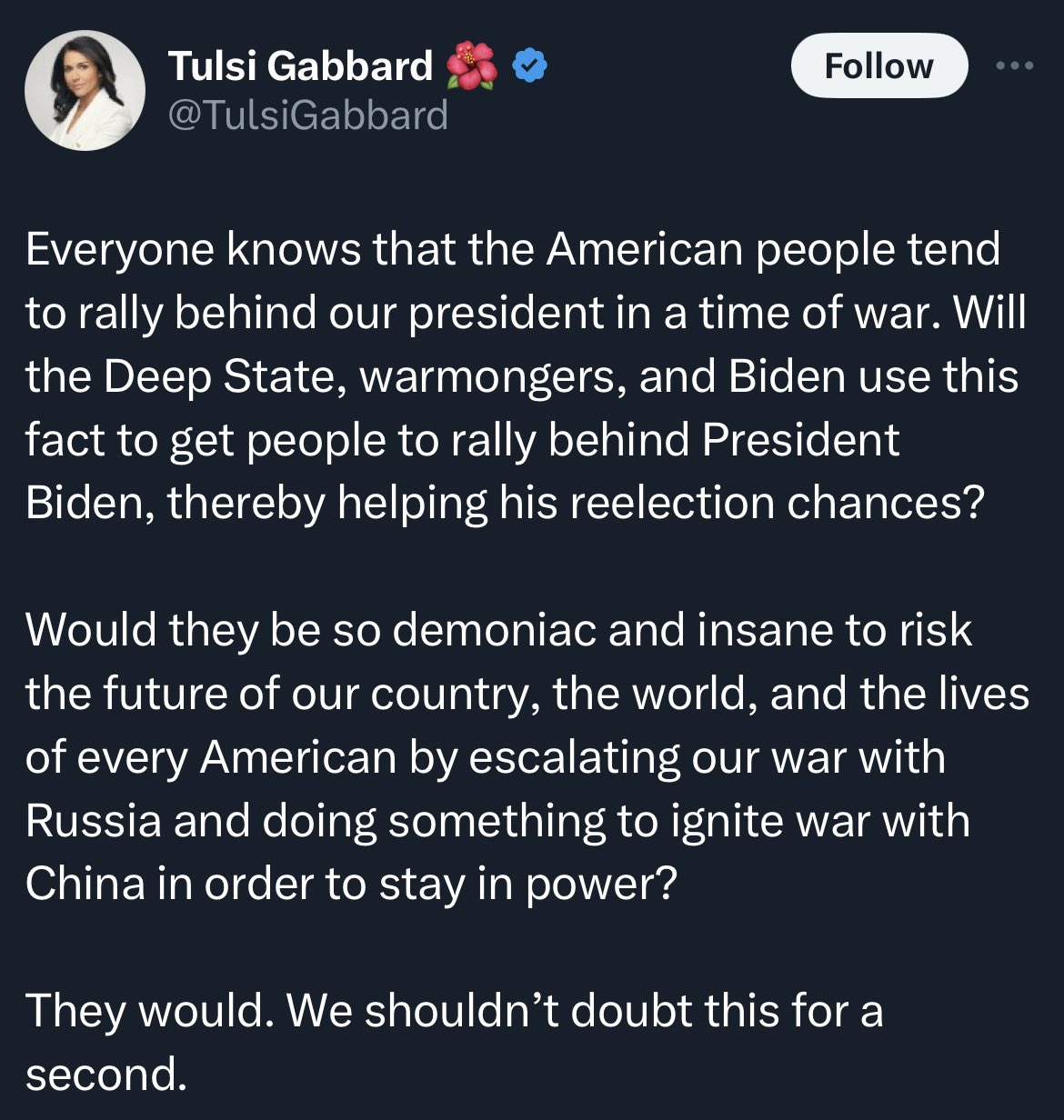 In 25 words or less, what triggered that tweet?