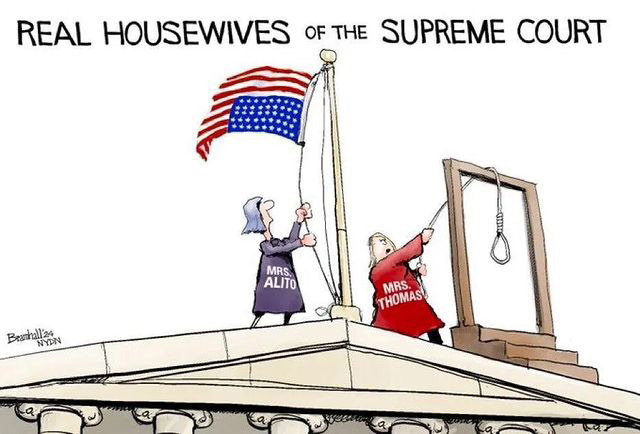 I’m going to repeat myself, but why is Roberts’ wife getting a pass on her shenanigans? Sure it’s not the same as participating in Jan 6, or flying the flag upside down (intended as a distress signal) before the inauguration. But it’s a pattern of behavior. Conservative justices spouses behaving in ways that may not be illegal but cast doubt on the integrity of the Justices. We talk about these two, but there is a third. I’m waiting for Gorsuch and Kavanaugh’s wives to come out with “I don’t really care. Do U?” jackets. Sure, it’s not illegal, but it tells you exactly where the families loyalties rest.