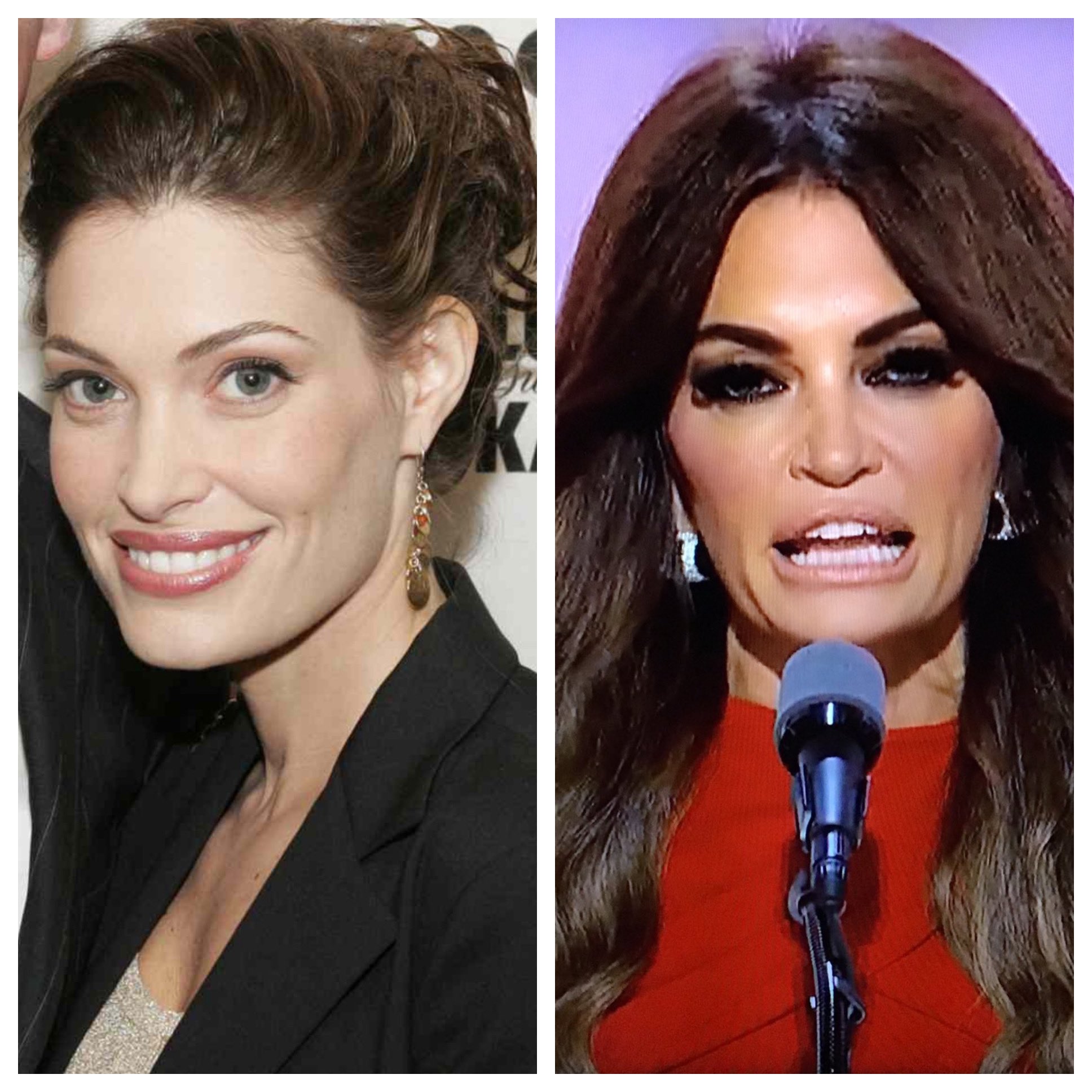 How sad. She was a lovely sophisticated looking young woman and has morphed into good lord I have no words. The long hair and black eye makeup are aging.