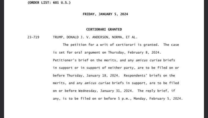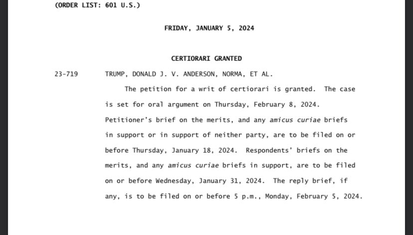 BREAKING: The Supreme Court has agreed to consider Colorado’s decision to deem Trump ineligible to run under the Constitution’s insurrection clause.