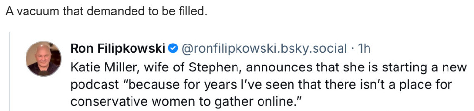 I assume you mean the one between her ears. Jesus, isn’t most of Facebook an echo chamber for conservative women to gather on line? And despite an ongoing liberal presence, Xitter and as far as I can tell virtually all of these forums are places where grifters can shill their stupid opinions and monetize their friends and acquaintances. What could be more a home for conservative women.