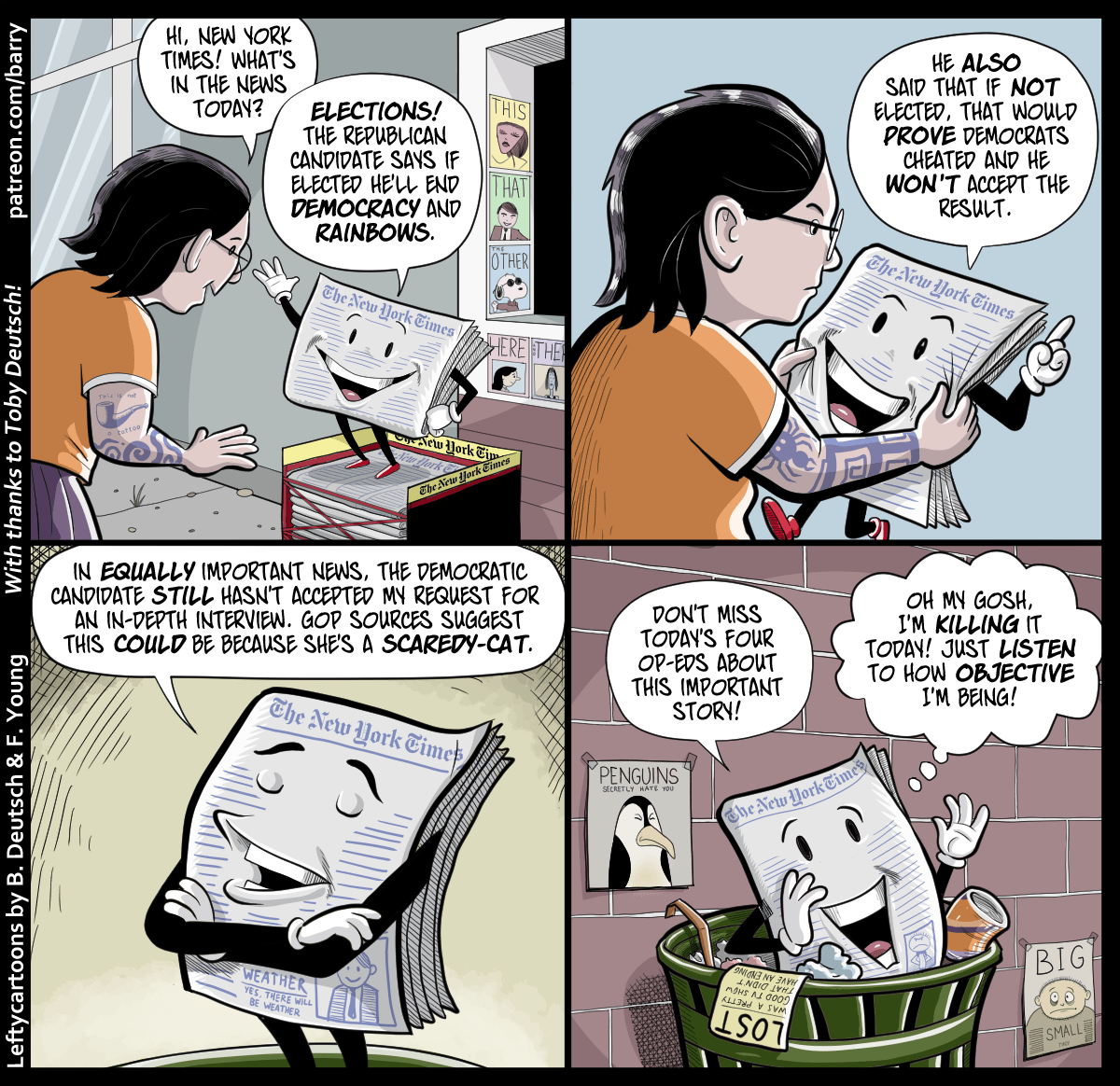 We are all responsible for the damage to our democracy by allowing these rule-breaking behaviors to persist with little or no accountability. These acts should not be tolerated in a process so essential to our own freedoms. Breaking the rules should result in banishment from political life and punishment serious enough to dissuade a bastard like Trump from even daring to enter the arena. Trump as a moronic corrupt real estate fraudster is an annoyance. Trump as a President is an existential threat to all of us.