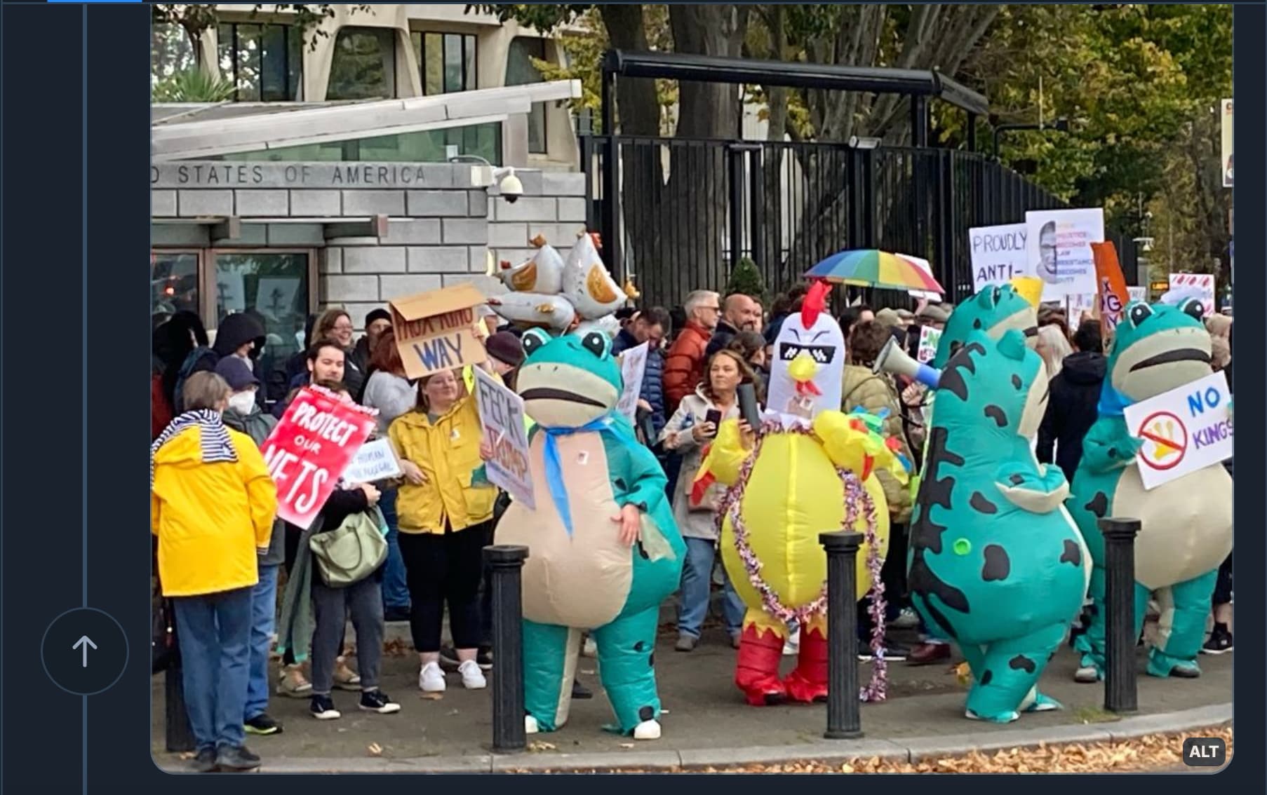 I can’t help but wonder if the widespread adoption of costumes at protests will make MAGA be very weird about Halloween. It seems like fertile ground for one of their moral panics.