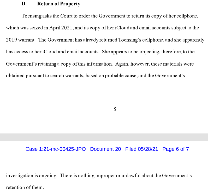 The whole basis of their frantic and deeply frivolous demands to receive discovery on the fruits of search warrants before they’re indicted appears to me to be driven by an urgent need to find out if the government cracked encryption someone provided them and told them was unbreakable before they start running their mouths on Fox and OANN.