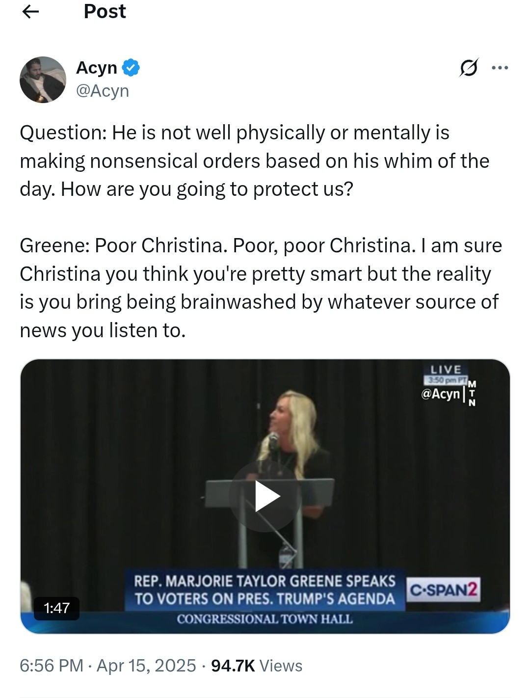 The admin lawyers are in contempt as are leavitt and trump. Donald skated really close to a serious red line of suggesting deporting American citizens. He is ready to fake charges as well on folk he hates…mainly Hispanic folks. This would and should be enough right now to impeach and remove him and send him in handcuffs to Florida. Then later back to DC to answer sentencing for his conviction on 34 felonies.
