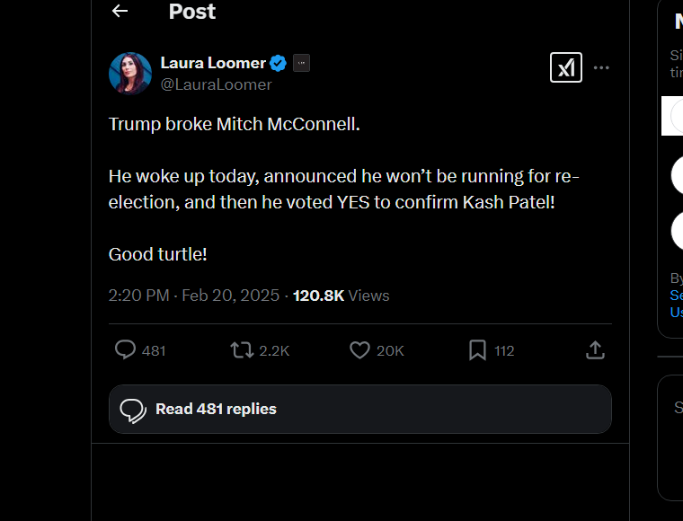 So, as I predicted, after all of McConnell’s recent Nay votes for nominees that still got confirmed, when his vote actually mattered, he voted to confirm the vile Kash Patel. Surprise, surprise, surprise…NOT!