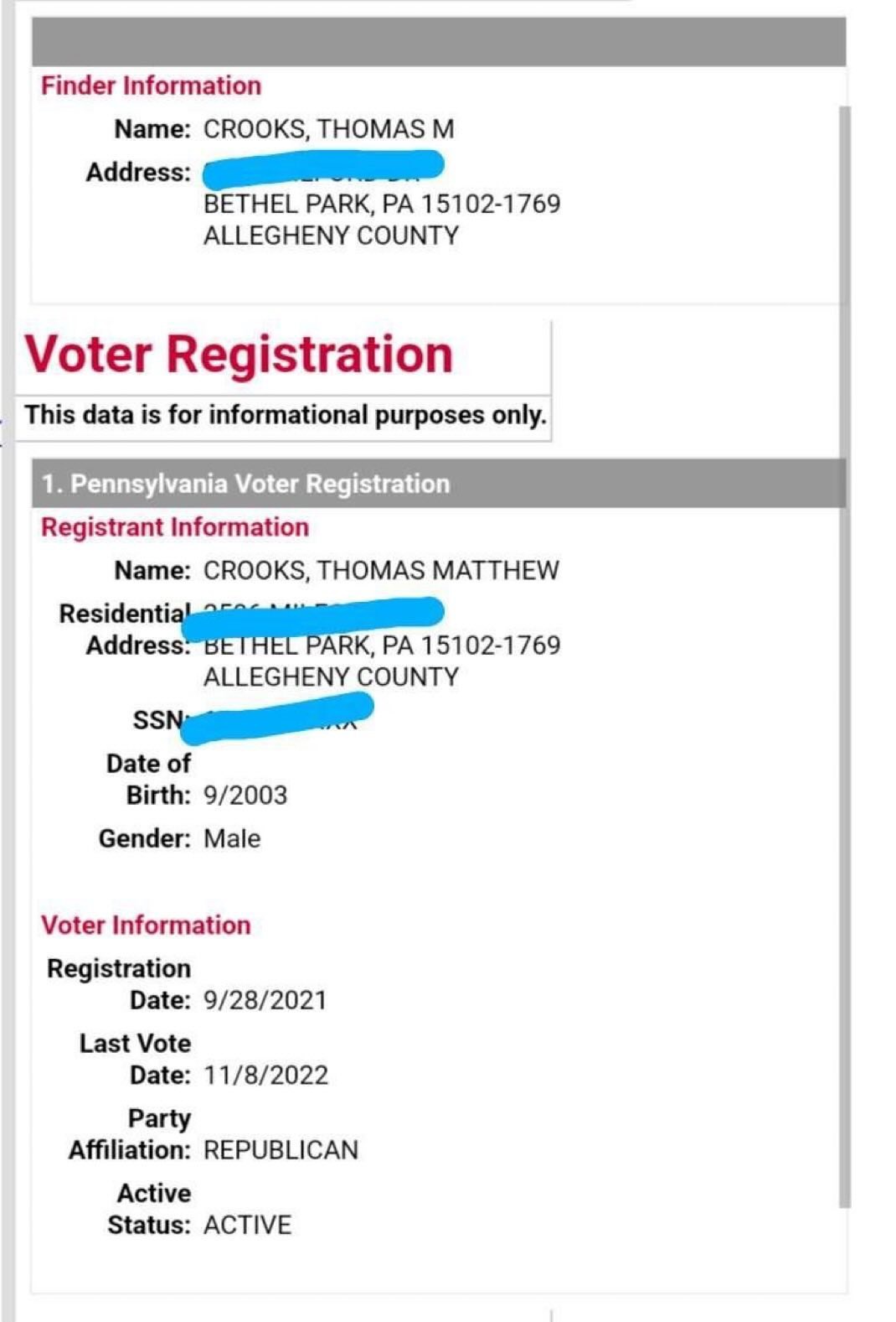 Yes, if it’s true…it’s early so anything is possible, but it seems people have checked the voting records and found it. Of course, he might be a gay/trans Republican, or maybe he’s a true believer on abortion and felt betrayed by Trump’s efforts on the Republican platform, or maybe he was Republican and switched to antifa. He was probably just a confused kid who was driven by something to take a shot at Trump, and he paid the price for it, and he will be vilified as a left wing assassin and agent of Joe Biden by the right wingers no matter what his beliefs actually were.