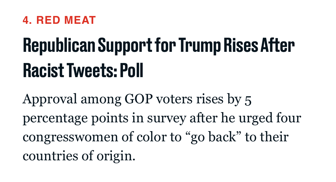 All well and good, but other than Representative Omar, the women’s “country of origin” is the United States. Let’s stop calling it “racism” and start calling it “bigotry” or “prejudice.” Words matter.