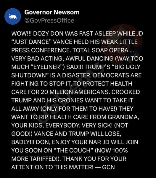 If I thought the Dem leadership was capable of having a strong enough message to break through the media and make it look like a good idea, I’d be in favor of the shutdown. But medical care ain’t it. Because the higher cost from the Big Bill hasn’t kicked in yet, and people aren’t feeling it.