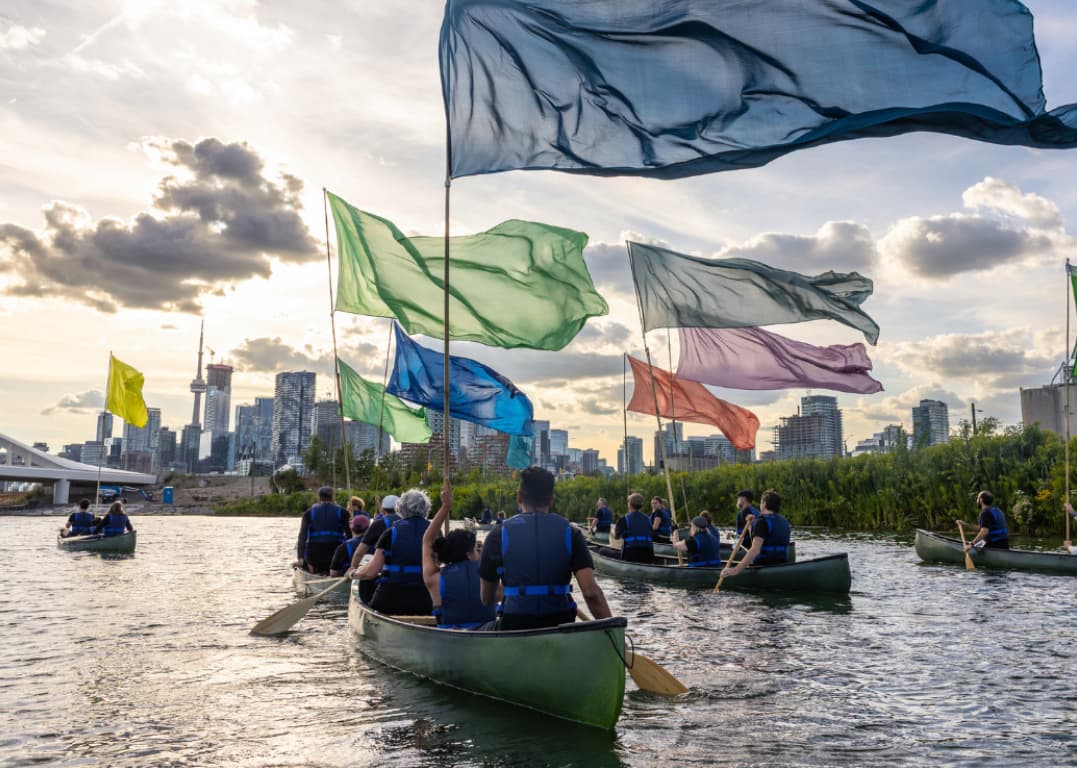 Yesterday the rain took a respite and we finally began our rehearsals for A Lake Story. It’s a celebration of Lake Ontario. On Saturday and Sunday we will have 120 identical canoes, two paddlers and a flag bearer in each.