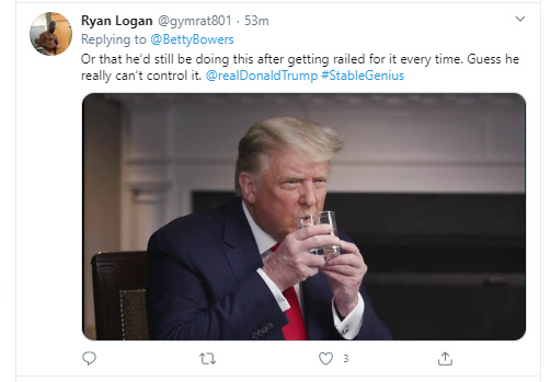 Holy shit he uses two hands to start a glass of water up toward his face to take a sip near the end…I bet he’s been having some mini strokes! Around time 29 screen shot of it