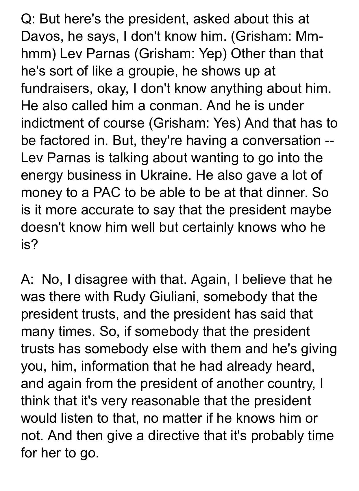 No one believes Trump or his lying “administration” hacks like the drunkard Grisham. Trump is threatening Schiff.