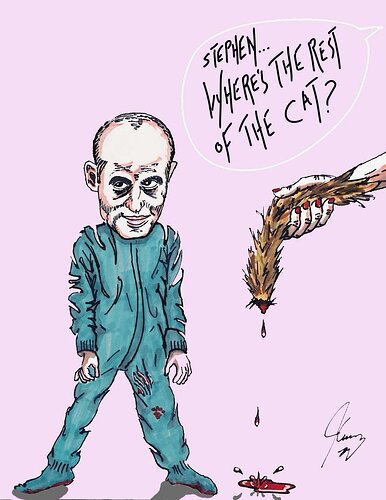 He was also in the room as witness to many, many crimes. Just one look in those dead eyes and one knows that he would never put his own neck on the line for Shithead or anyone else.