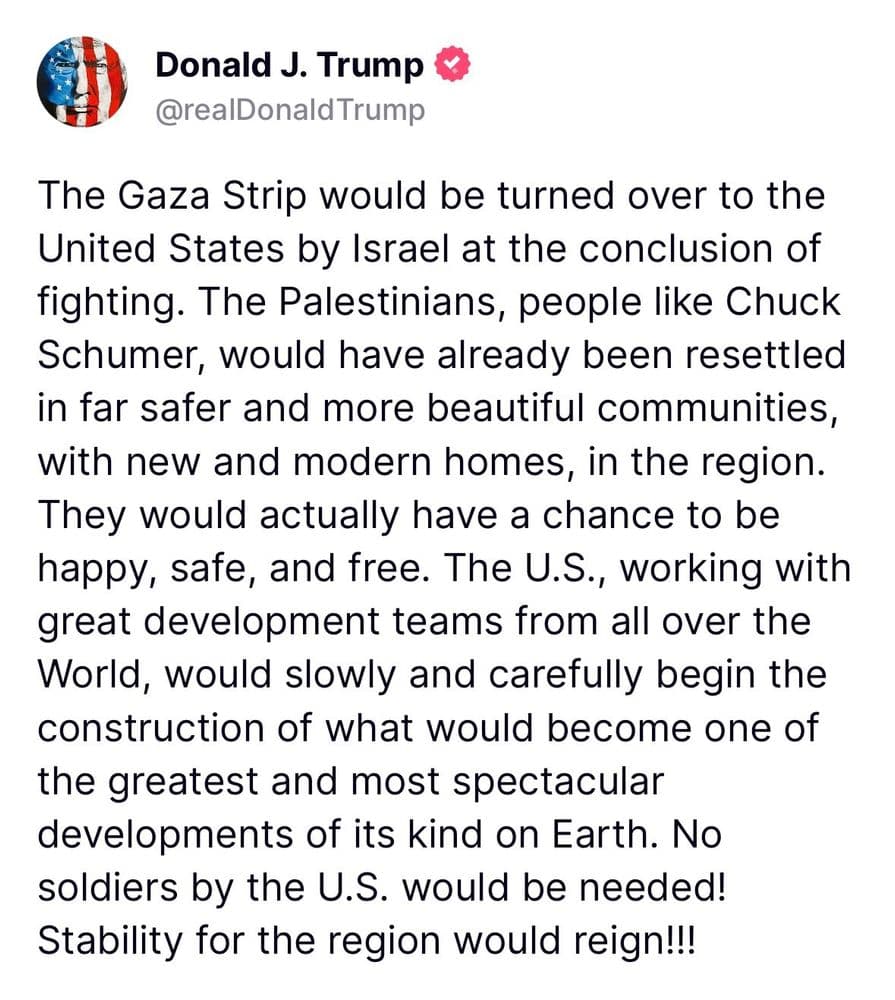 Or is there some reason tech-bro-donor money (or whatever else is behind this weird writing) would actually have been the source of Trump’s Gaza “idea.” … Do they have their own purposes in mind for an ethnically cleansed Gaza that go beyond beachfront Trump condos?