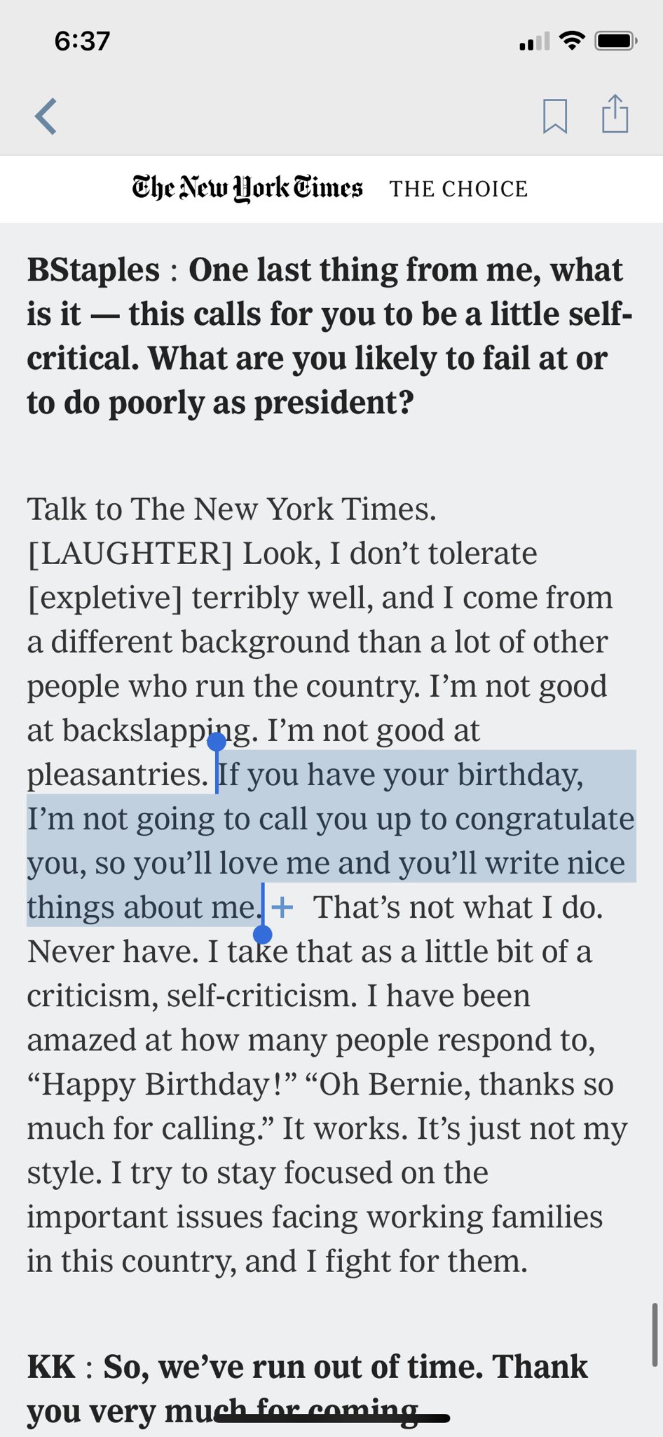 OT via @nycsouthpaw . Bernie has just come up a notch, in my estimation, as the anti birthday candidate.